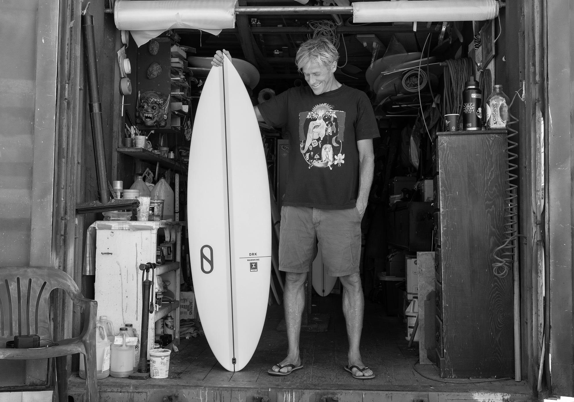 Kelly's FRK shapes went unchanged until 2022 for the Barra de la Cruz event when he wanted to change the rail and foil to be more balanced under his chest. And then once more before a trip to J-Bay in 2023, when he asked Dan to push the wide point forward making the back half of the board more narrow than the FRK, allowing for a more elliptical, pulled-in tail. More narrow meant more sensitivity, and more need to be on top of your game.